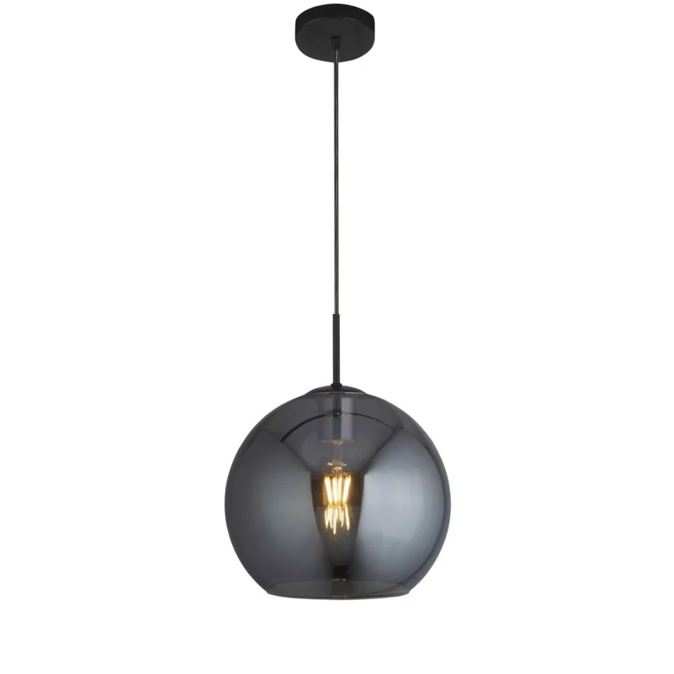 Das Rauchglas verleiht dem Kugelschirm einen besonderen Look, was aus der Hängelampe einen absoluten Blickfang macht