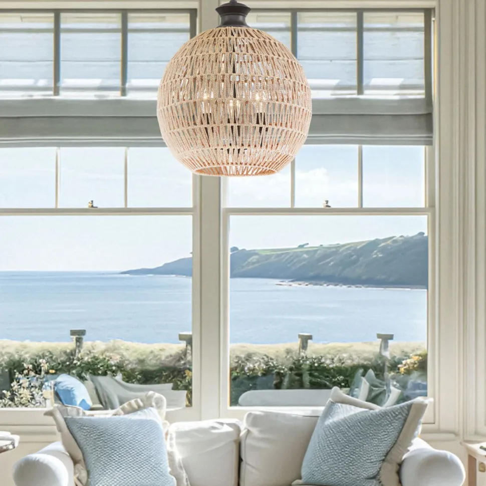 Runde Pendelleuchte mit geflochtenem Korb Lampenschirm aus Seil