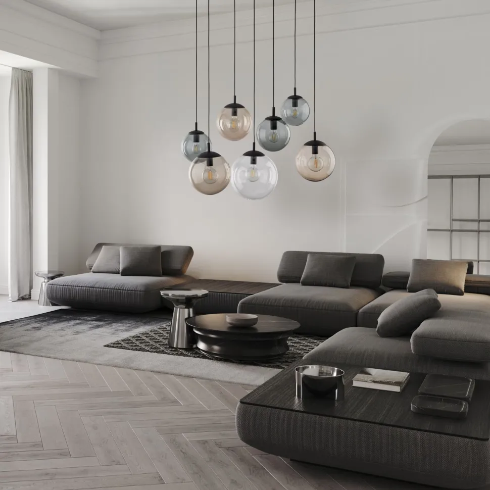 Die unterschiedlichen Kugelschirme sorgen für einen außergewöhnlichen Look, der die Hängelampe zu einem dekorativen Blickfang macht