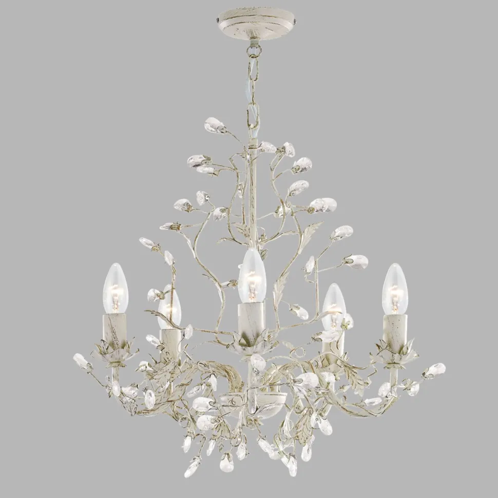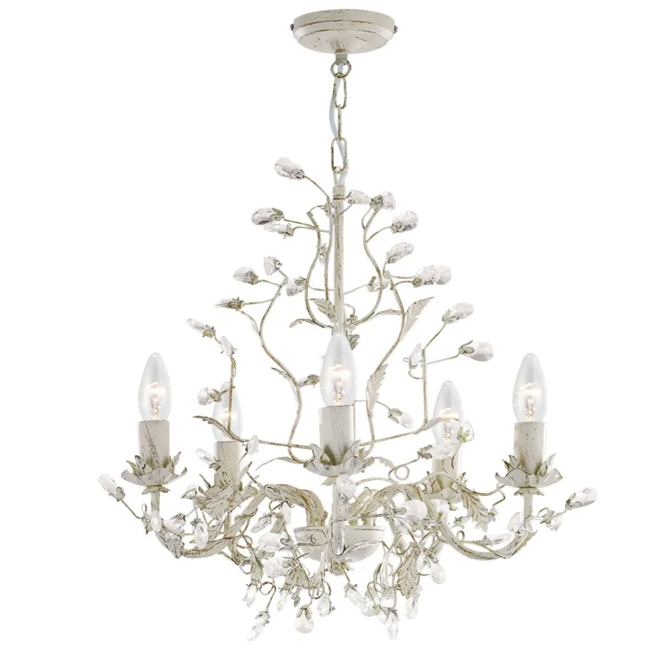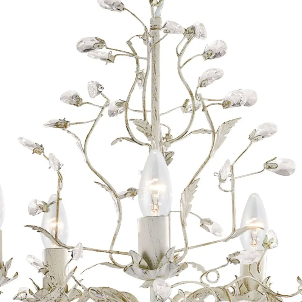 Der opulente Lüster besticht durch seine floralen Verzierungen und funkelnde Glaskristalle – ein dekoratives Highlight in jedem Schlafzimmer, Wohnzimmer und Esszimmer