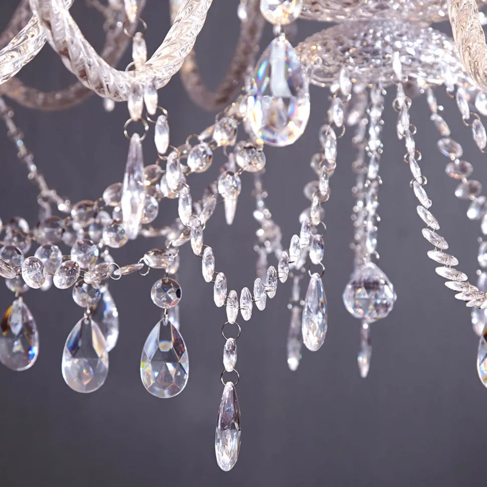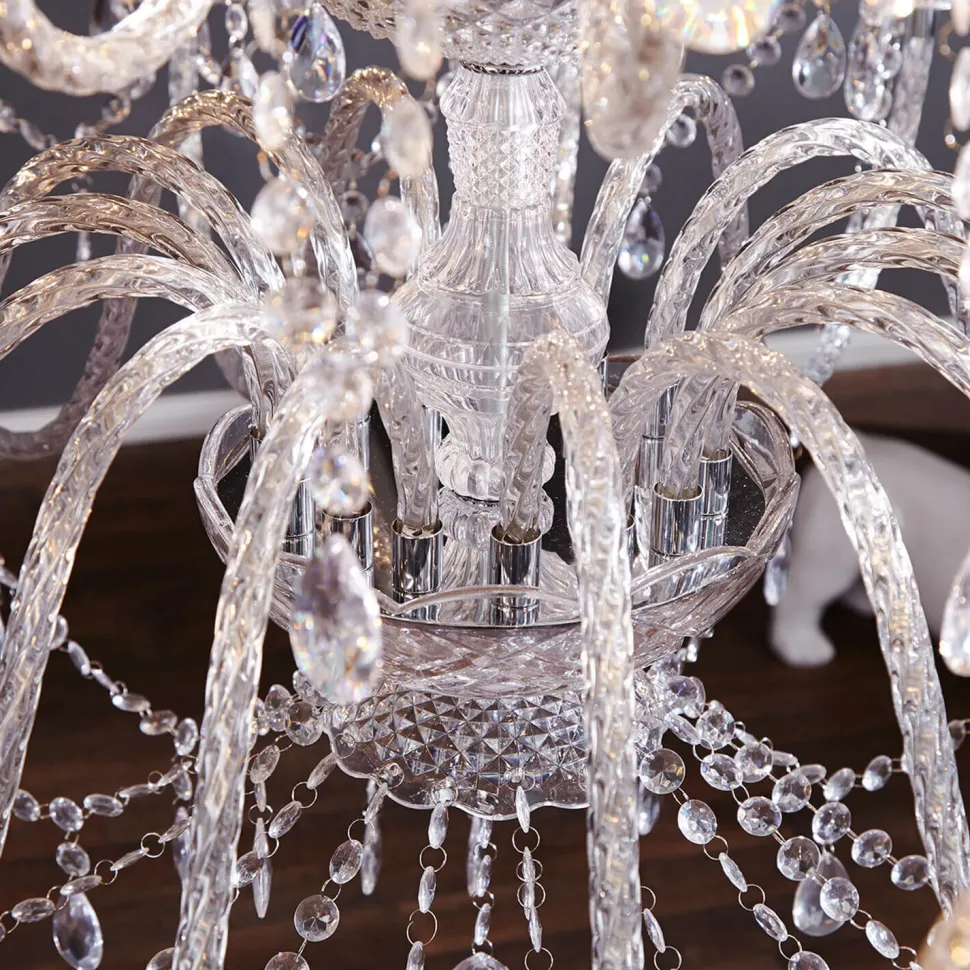 Prächtige Kristall-Applikationen aus Acryl, die das Licht brechen und den Kronleuchter funkeln lassen