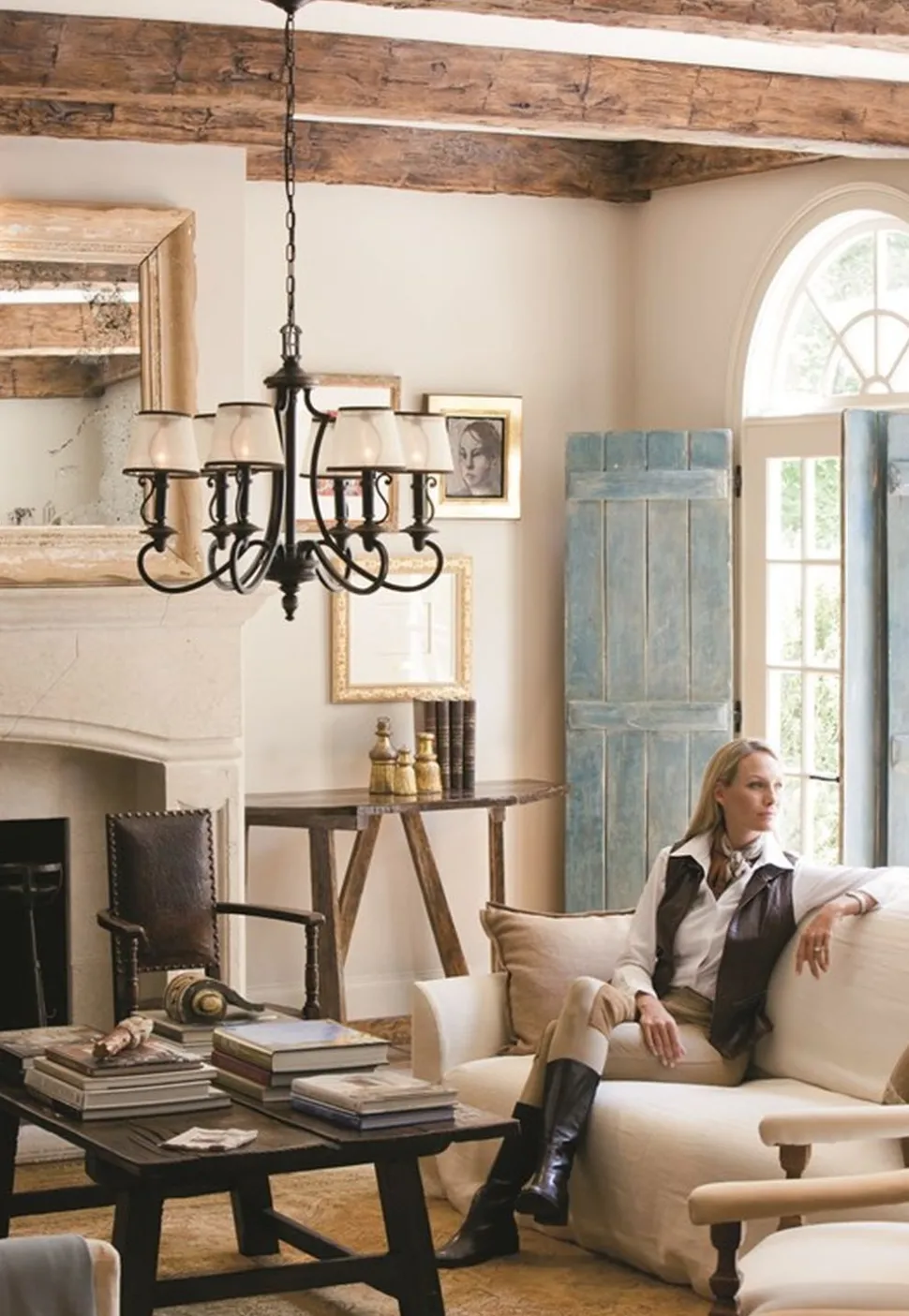 Rustikaler Kronleuchter mit 6 Schirmen für Wohnzimmer und Esszimmer