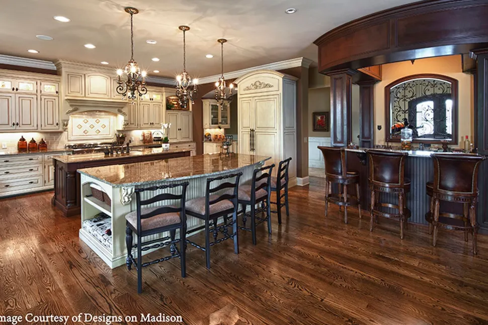 Das geschwungene Metall in seiner rustikalen Farbe macht aus dem Lüster einen dekorativen Blickfang