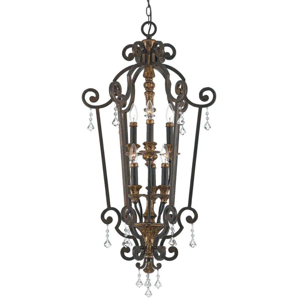 Kunstvoller Kronleuchter in edlem Bronze mit Glas Kristallen für Esszimmer und Wohnzimmer