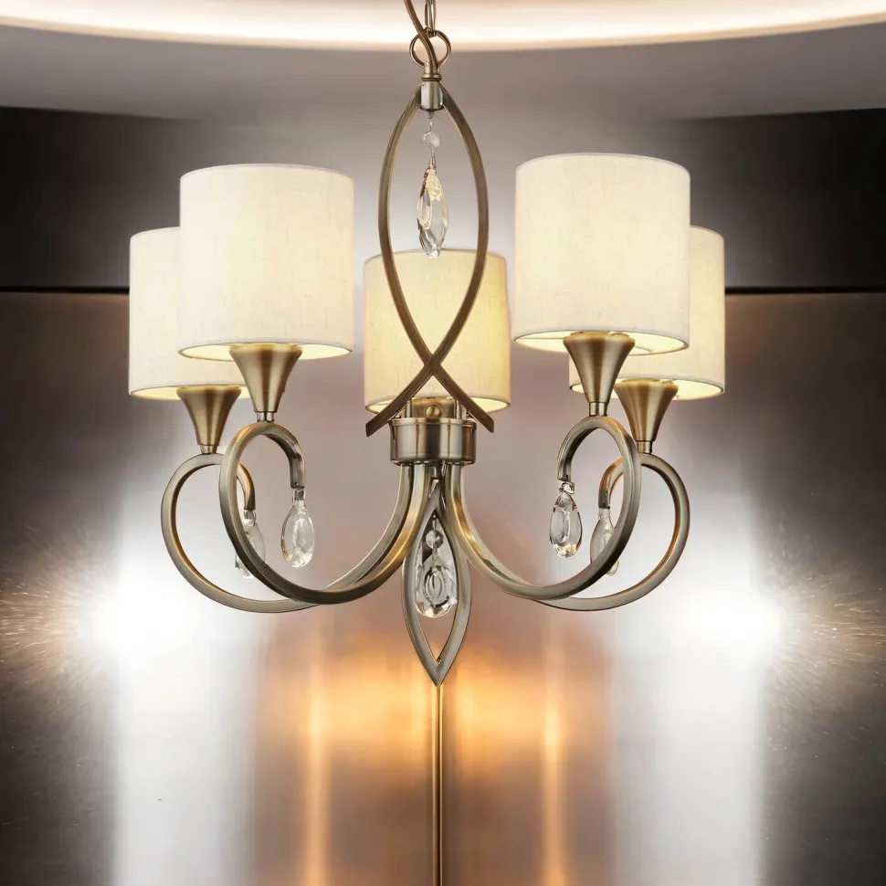 Eleganter Kronleuchter mit Schirm und dekorativen Kristallverzierungen
