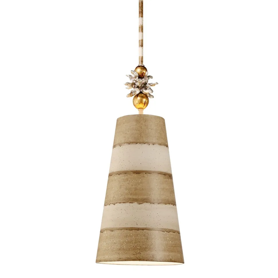 Kunstvolle Deckenleuchte mit gestreiftem Schirm und eleganten Verzierungen