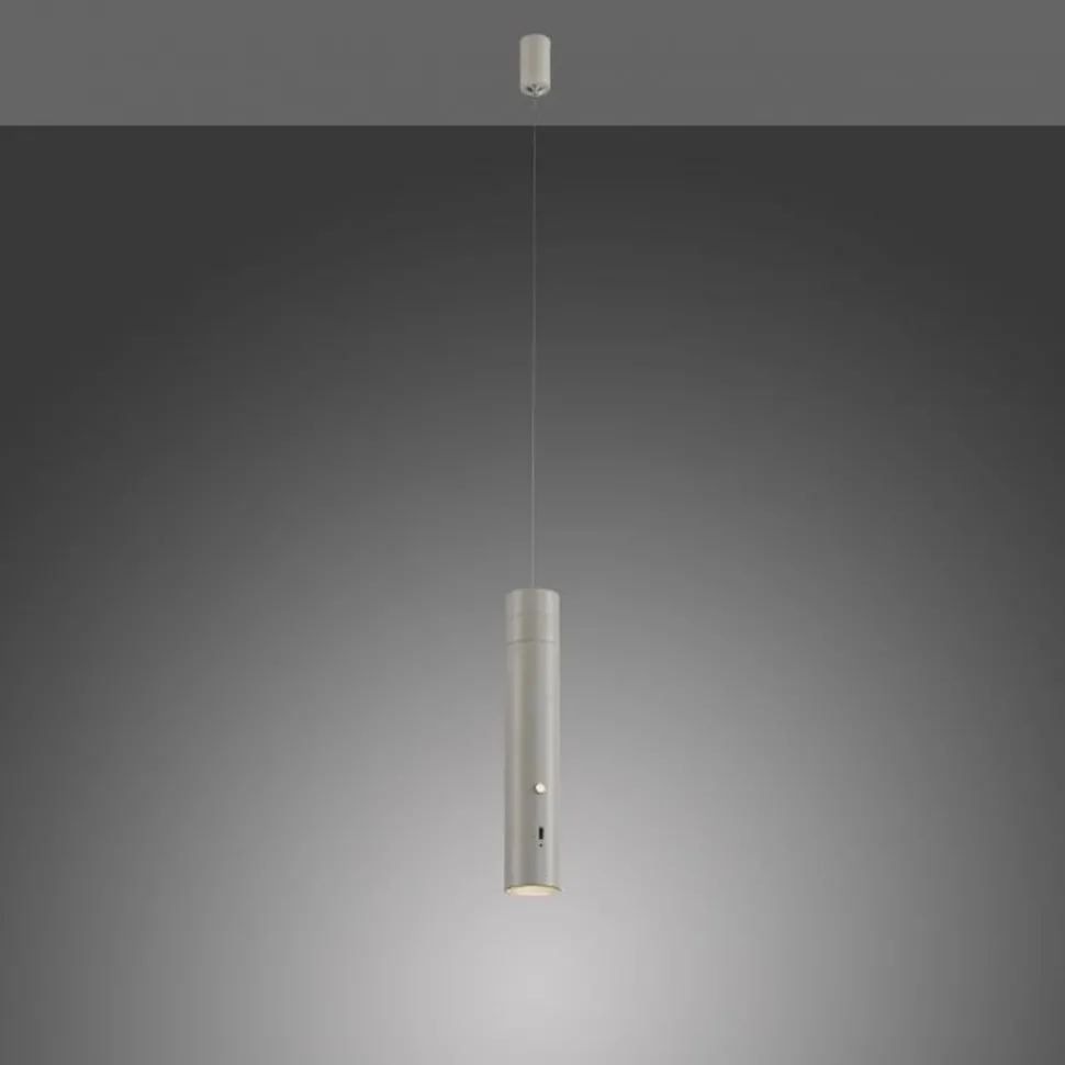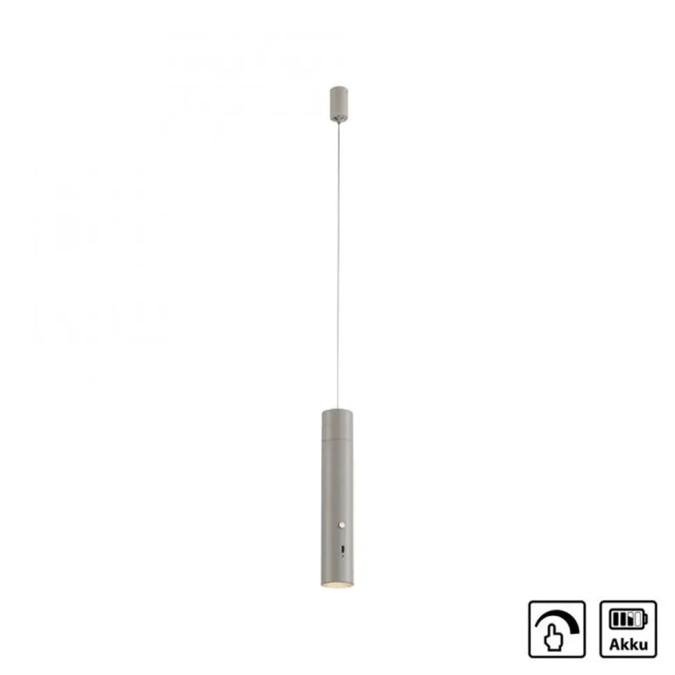 Moderne LED Akku Pendelleuchte aus Metall in Greige