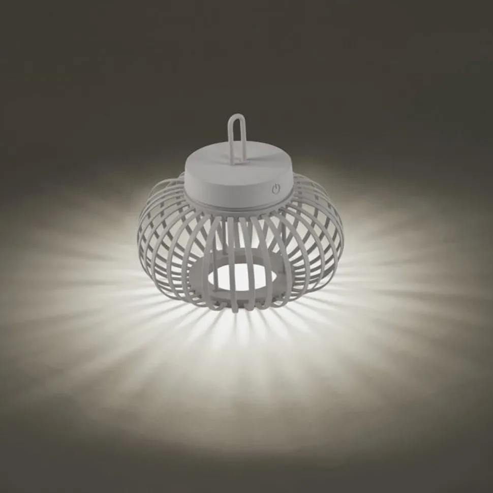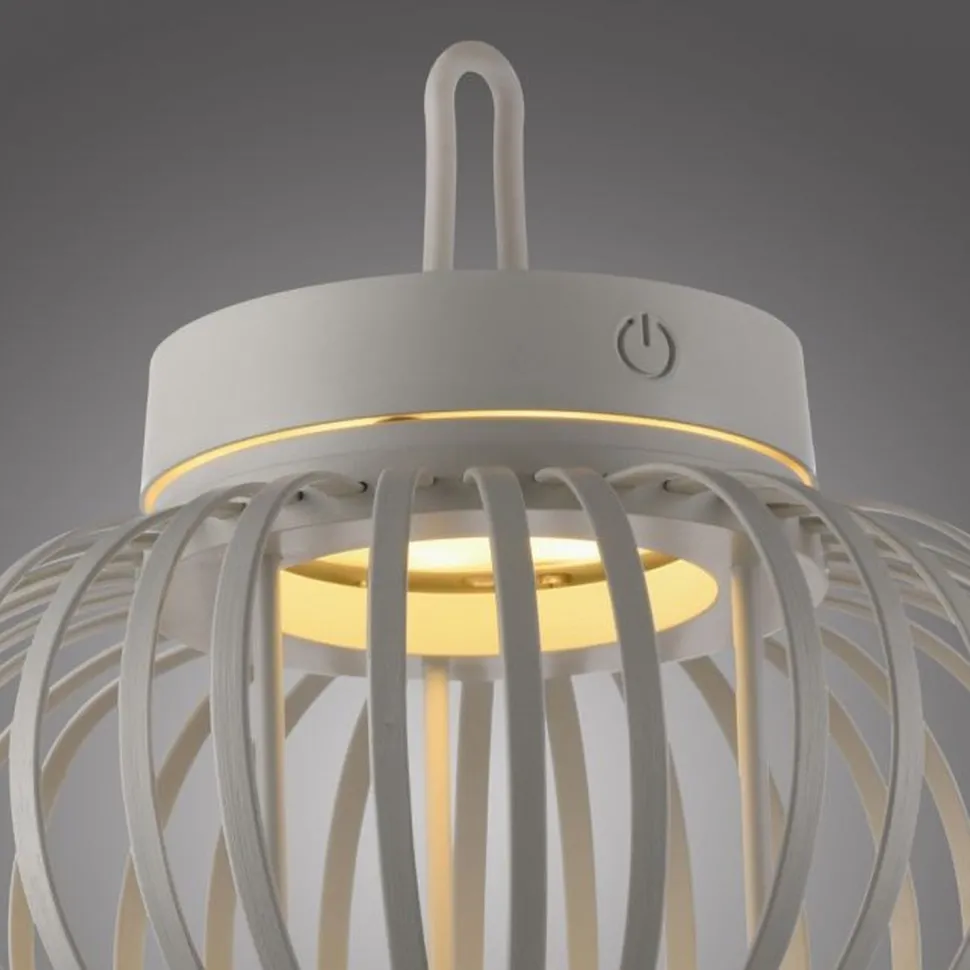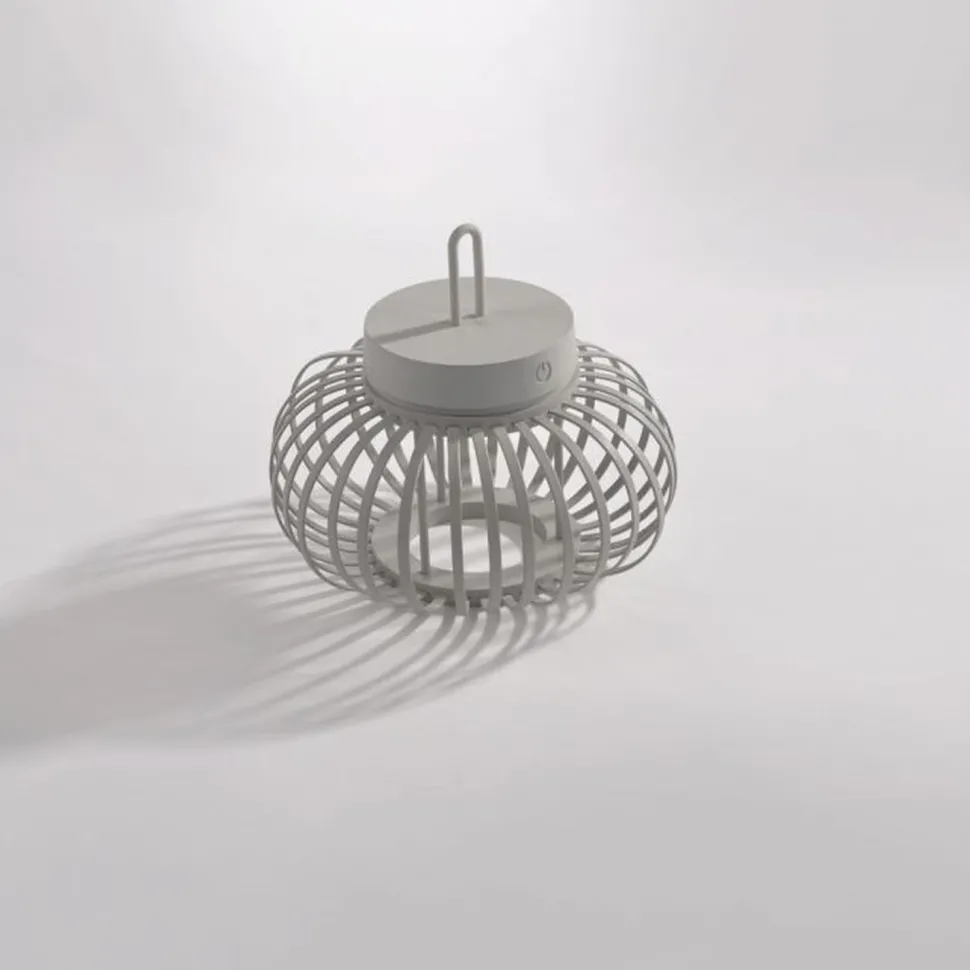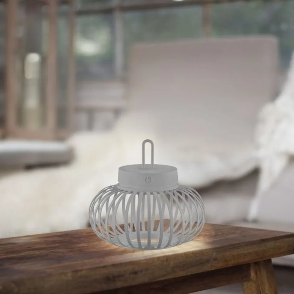 Moderne LED Akku Tischlampe aus Metall in Greige