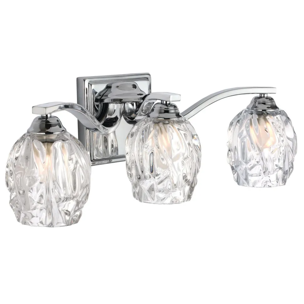 Design Bad Wandlampe in poliertem Chrom mit kunstvollem Schirm aus Glas