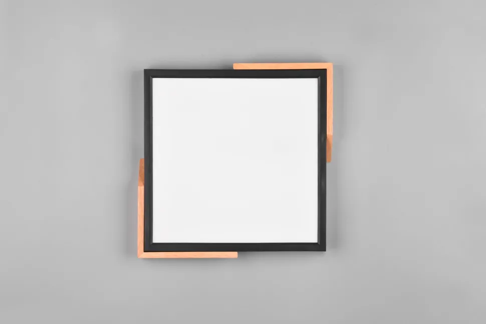 Skandinavische LED Deckenleuchte aus Kunststoff und Holz in Schwarz