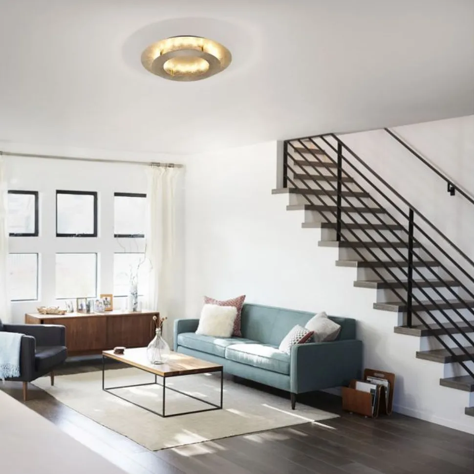 Retro LED Deckenlampe aus Metall in Blattgold