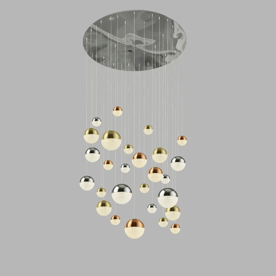 Große Pendelleuchte mit farbenfrohen Kugelschirmen
