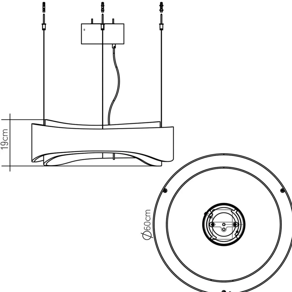 | Maße: | Breite: 600 mm | Hängetiefe: 580-2980 mm | Länge: 600 mm | Durchmesser: 600 mm | Höhe Schirm: 190 mm |