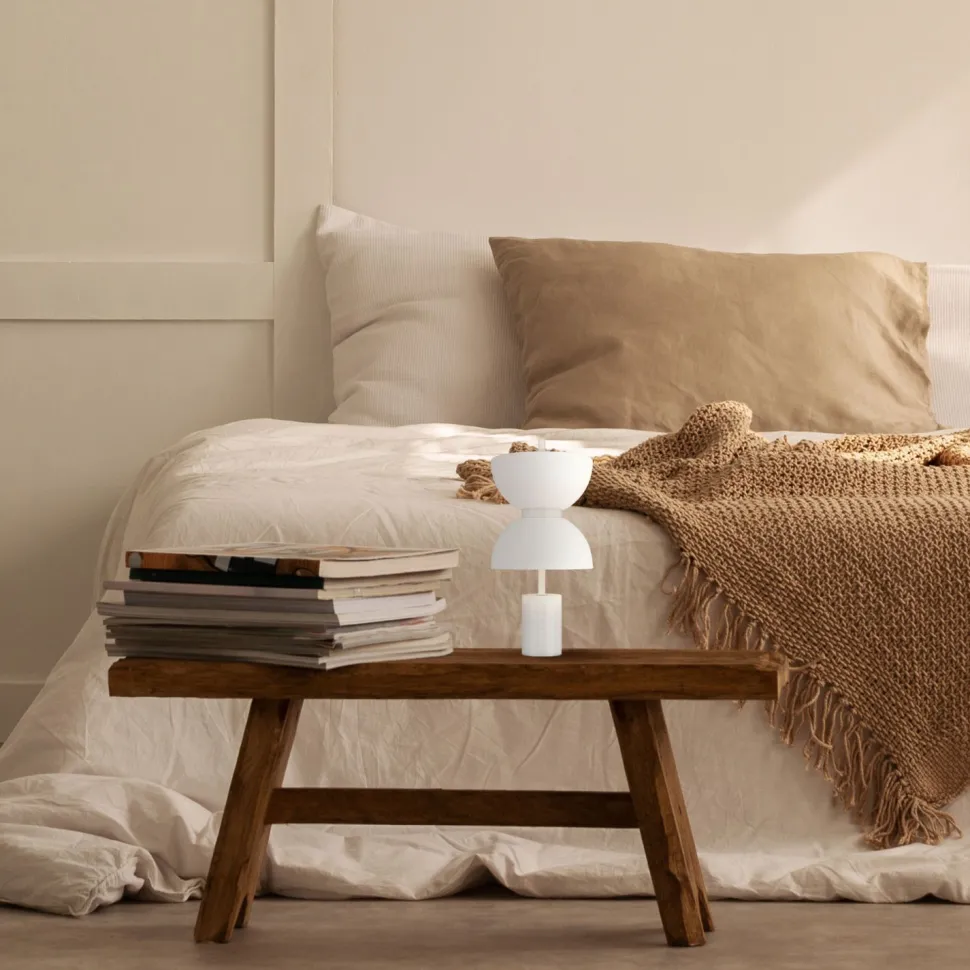 Das Licht der Tischlampe wird blendarm gestreut und sorgt für eine angenehme Beleuchtung – ideal als Nachttischlampe oder als Ambientebeleuchtung auf dem Sideboard oder dem Konsolentisch