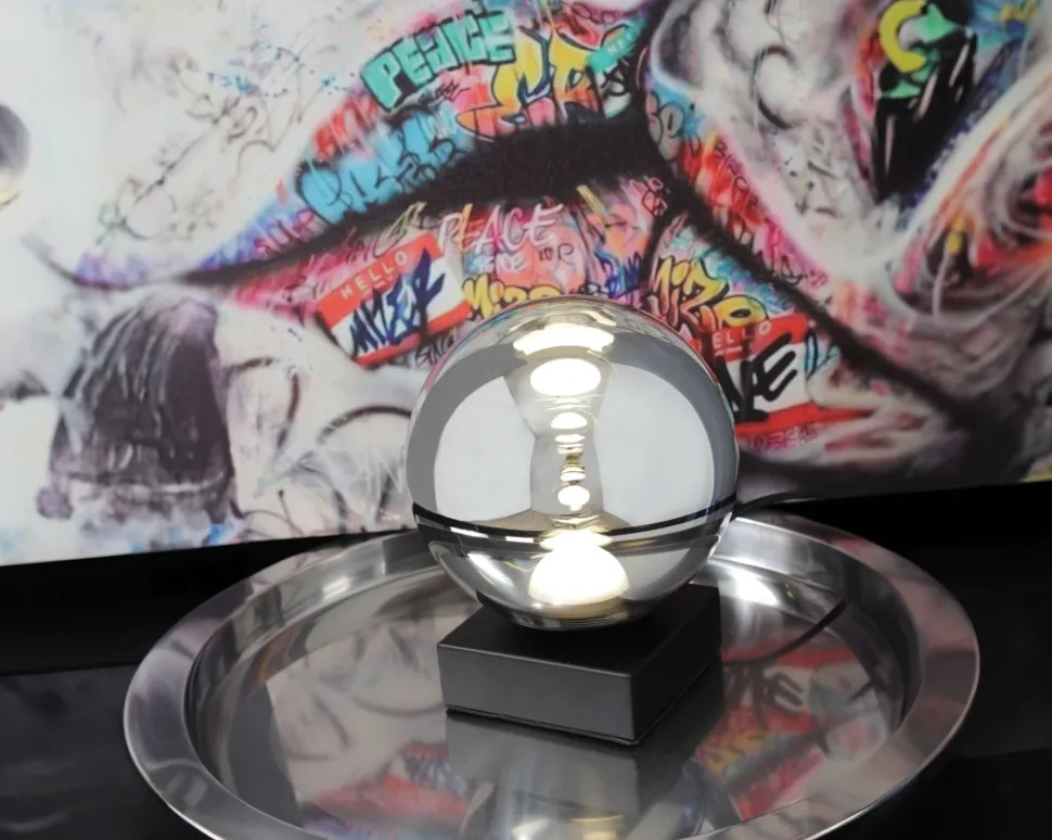 Der glänzende Glasschirm in Rauchsilber verleiht Deinem Zuhause einen stilvollen Akzent