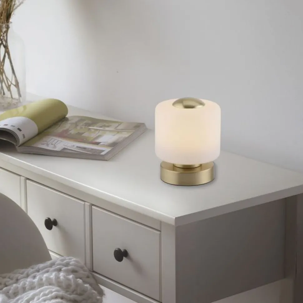 Moderne LED Tischlampe aus Metall und Kunststoff in Messing