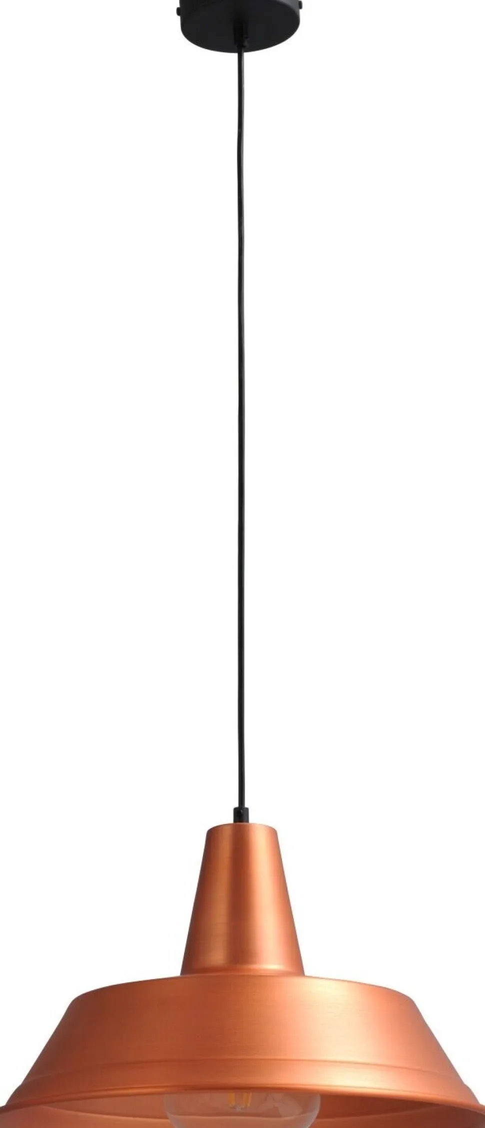 Der flache Schirm in der Trendfarbe Kupfer ist besonders gut für niedrige Räume geeignet