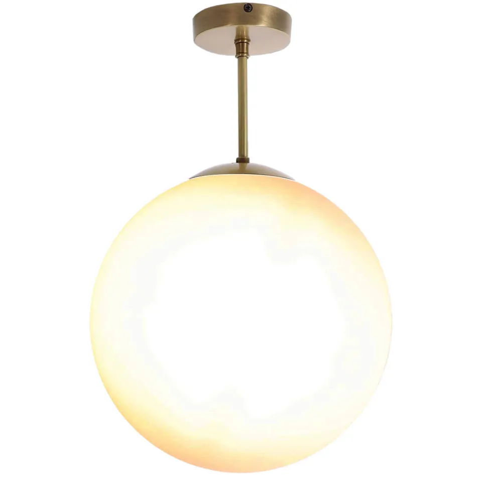 Elegante Deckenleuchte aus massivem Messing mit Glas Kugel Schirm