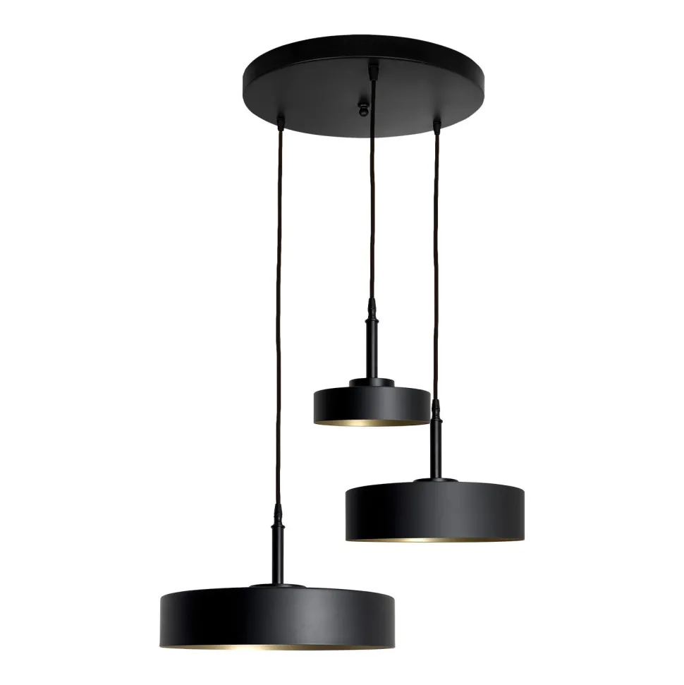 Runde Pendelleuchte aus massivem Messing in Schwarz und Gold