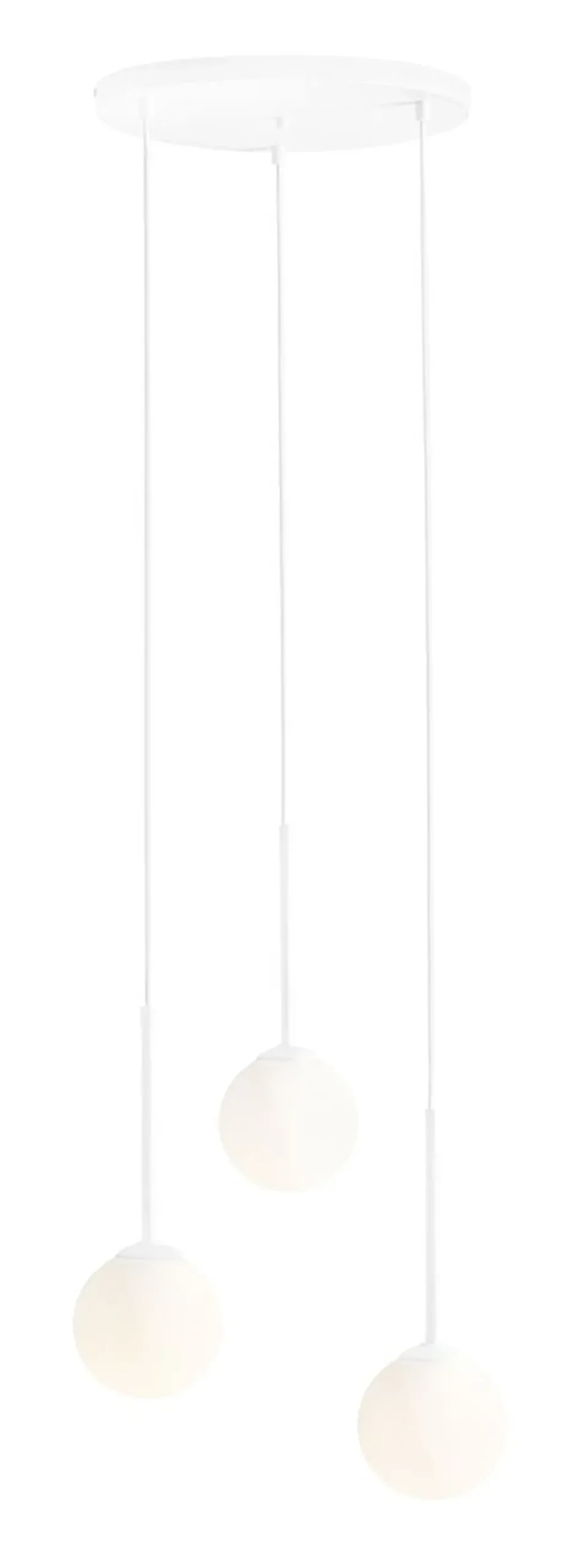 Die satinierten Kugelschirme aus Glas streuen das Licht warm und weich – ideal für ein gemütliches Ambiente über dem Esstisch in Wohnzimmer und Esszimmer
