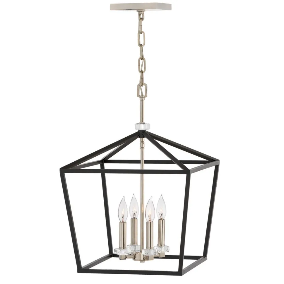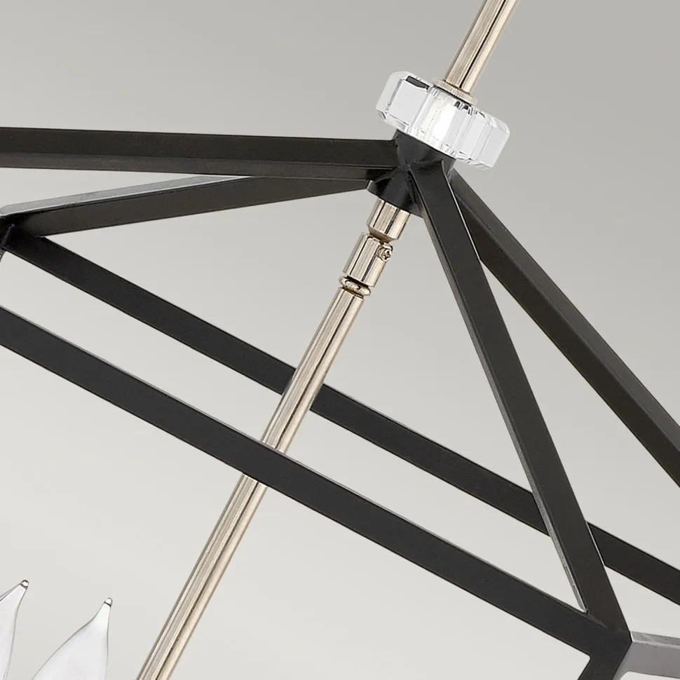 Offene Pendelleuchte aus Metall in Schwarz und Nickel