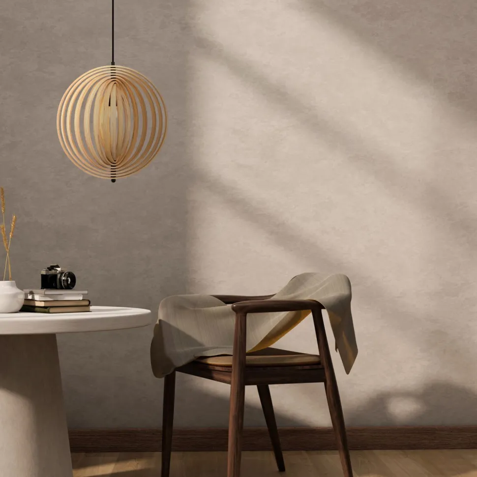 Skandinavische Pendelleuchte mit Holzschirm für Wohnzimmer und Esszimmer