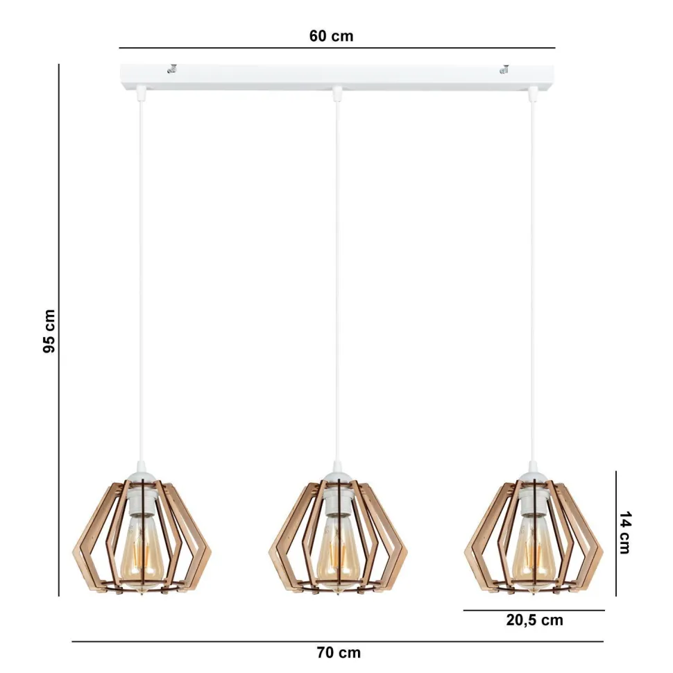 Tipp: Deko-Leuchtmittel machen die Hängeleuchte besonders dekorativ Entdecke die skandinavische Pendelleuchte REPIX – ein stilvolles Highlight für dein Zuhause! Mit ihrem minimalistischen Design aus hochwertigem Metall und Sperrholz in elegantem Weiß bringt diese Leuchte nicht nur Licht, sondern auch eine warme Wohnlichkeit in jeden Raum. Ob über dem Esstisch, im Wohnzimmer, in der Küche oder im Arbeitszimmer – die REPIX Pendelleuchte ist die perfekte Wahl für alle, die Wert auf harmonisches Design und Funktionalität legen. Die offenen Holz-Schirme dieser Hängelampe sorgen für eine angenehme Lichtverteilung und schaffen eine einladende Atmosphäre. Dank der Höhenverstellbarkeit ist sie ideal für hohe sowie niedrige Decken und passt sich flexibel deinen Bedürfnissen an. Du hast die Freiheit, die Helligkeit und Lichtfarbe selbst zu bestimmen, indem du die passenden Leuchtmittel (3x E27 bis 60W) wählst. Besonders dekorativ wirken Deko-Leuchtmittel, die der Pendelleuchte einen individuellen Touch verleihen. Mit einem Durchmesser von 205 mm und einer Hängtiefe von 1040 mm ist die REPIX nicht nur funktional, sondern auch ein echter Blickfang. Die IP20-Klassifizierung macht sie zur idealen Innenleuchte, die in jedem Raum für stimmungsvolles Licht sorgt. Ob als Pendelleuchte über dem Esstisch oder als stilvolle Küchenlampe – die REPIX ist vielseitig einsetzbar und überzeugt durch ihr skandinavisches Design. Fazit: Die skandinavische Pendelleuchte REPIX vereint Ästhetik und Funktionalität auf perfekte Weise. Sie ist die ideale Wahl für alle, die ihr Zuhause mit einem modernen, warmen Lichtkonzept bereichern möchten. Lass dich von der REPIX inspirieren und schaffe dir eine Wohlfühloase in deinem Zuhause!