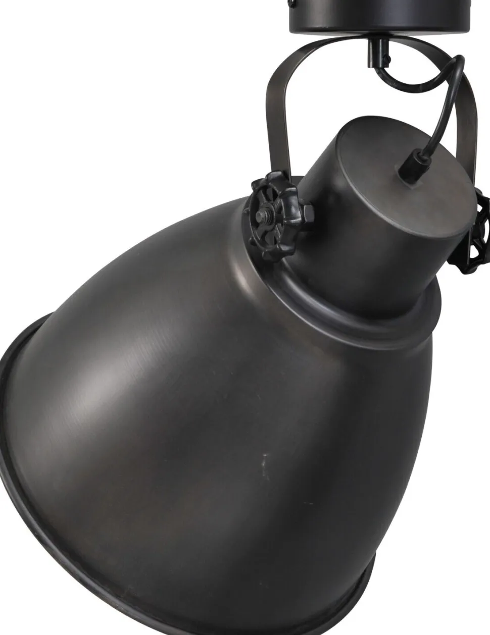 Feststellschrauben und Bügelhalterung sind ein stiltypischer Hingucker und ermöglichen die Verstellbarkeit des Schirms