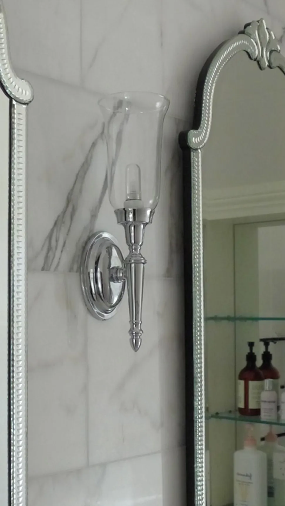Massive Messing Wandleuchte in glänzendem Chrom für das Badezimmer