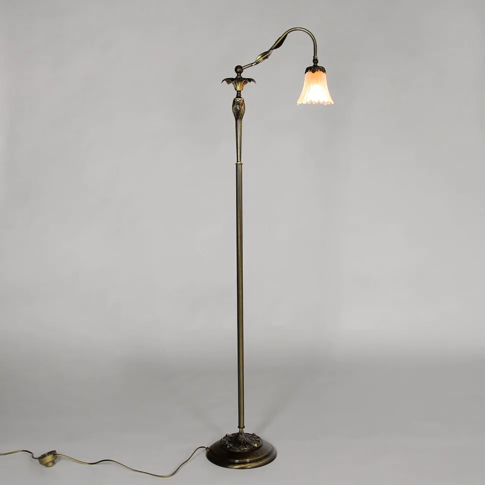 Floral Leuchte in Bronze hell glänzend, Weiß aus echtes Messing, Glas milchig