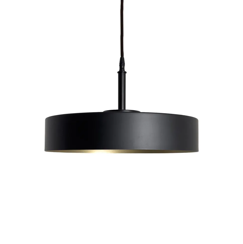 Runde Pendelleuchte aus massivem Messing in Schwarz und Gold
