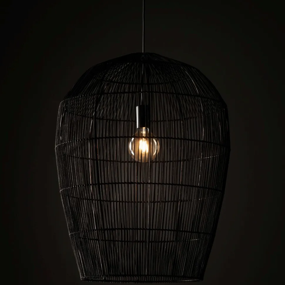 Moderne Pendelleuchte aus Bambus in Schwarz