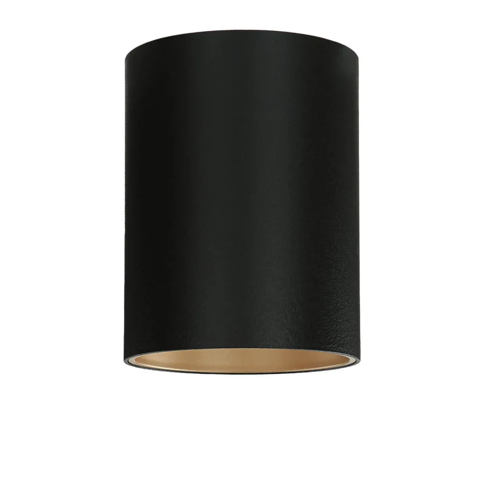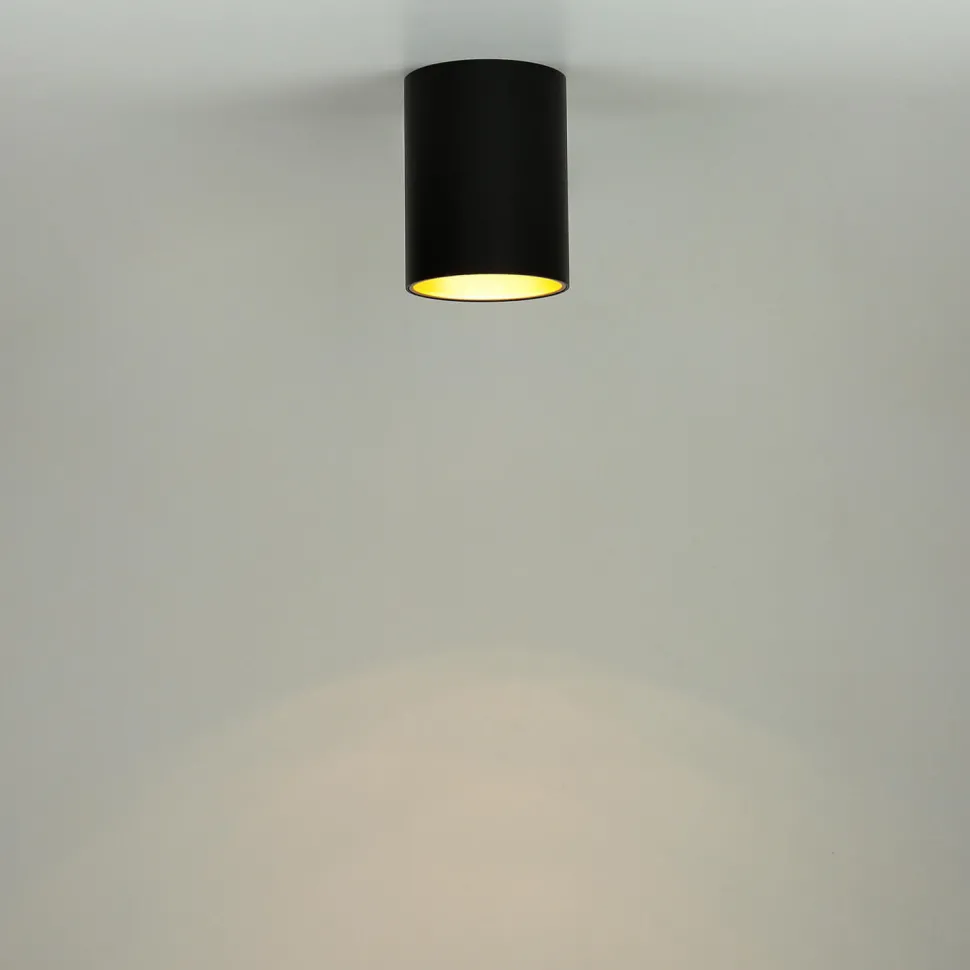 Moderne Deckenleuchte in Schwarz und Gold mit Metallkorpus und Kunststoffeinsatz
