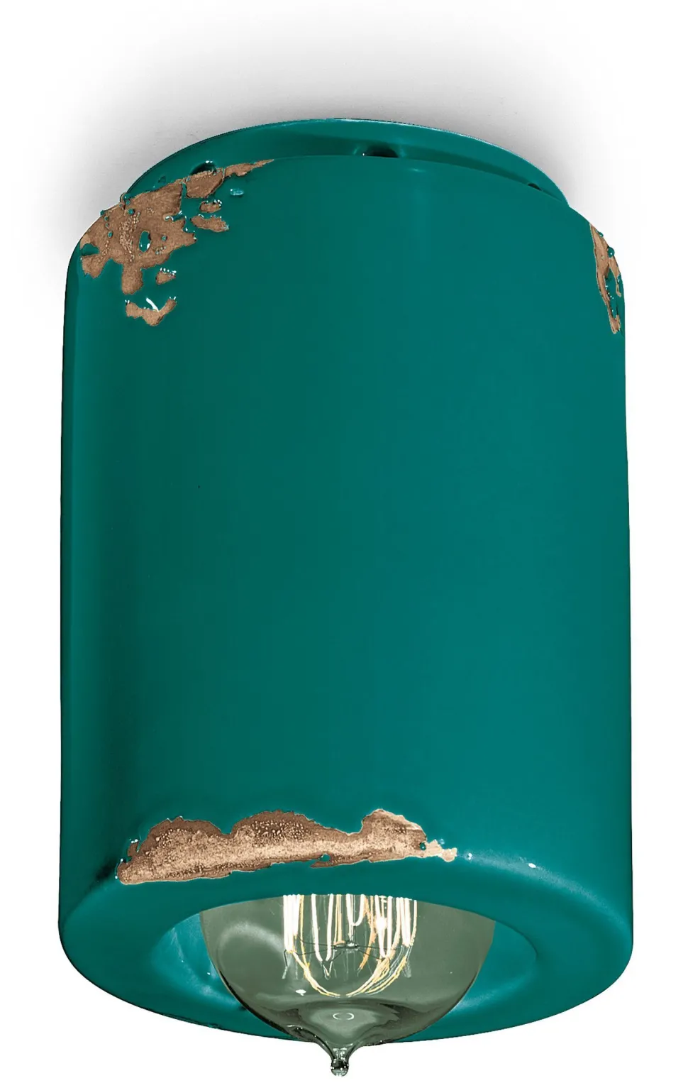 Runder Aufputz Deckenspot aus massiver Keramik in tiefem Petrol