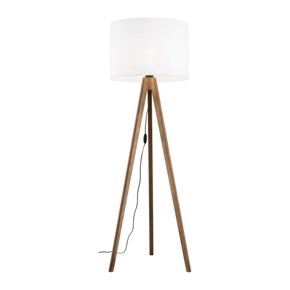 Das Dreibein Gestell aus Holz verleiht der Stehleuchte ein wohnliches Flair und passt perfekt neben das Sofa