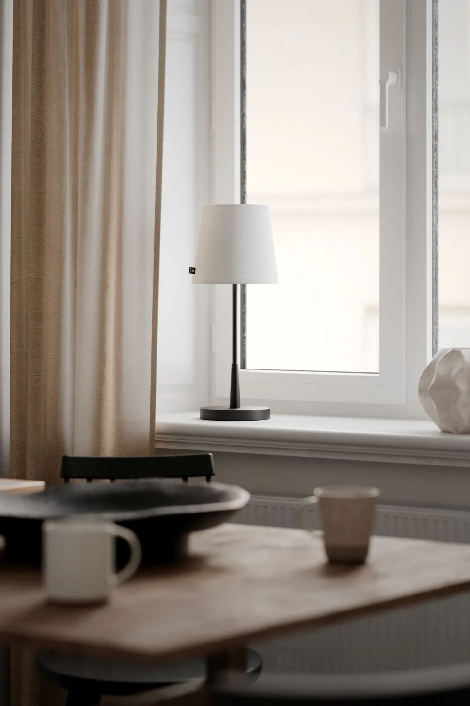 Das Licht der Tischleuchte wird durch den Lampenschirm blendarm gestreut – ideal als Fensterlampe, Beistelllampe und Nachttischlampe