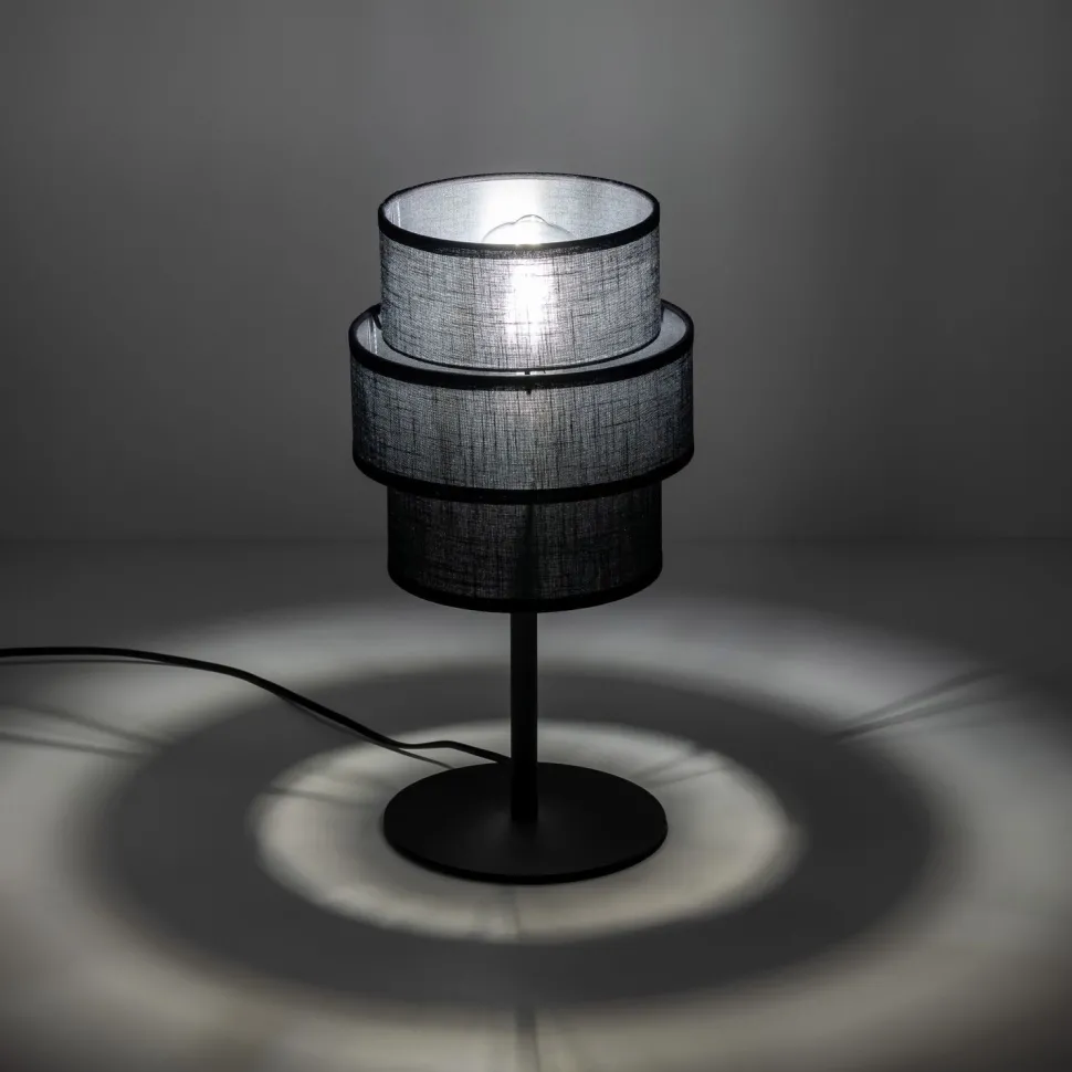 Moderne Tischleuchte mit grobem Stoffschirm für Wohnzimmer und Schlafzimmer