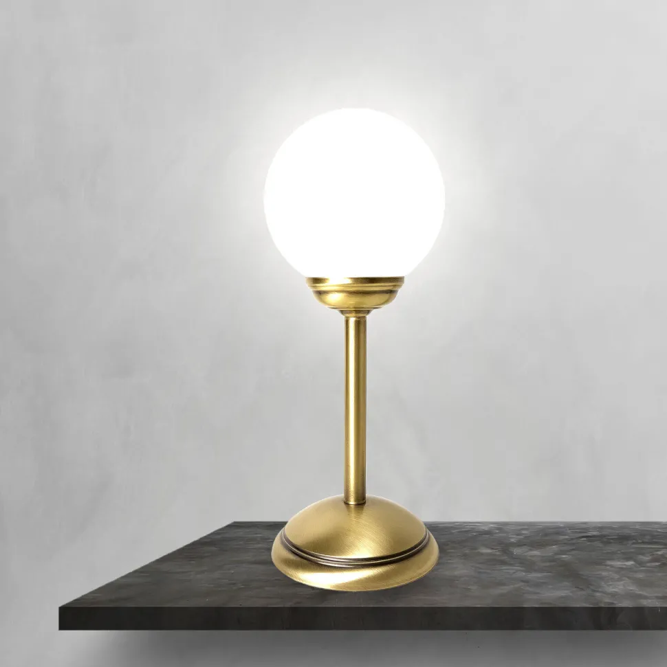 Kleine Tischleuchte aus massivem Messing und Glas