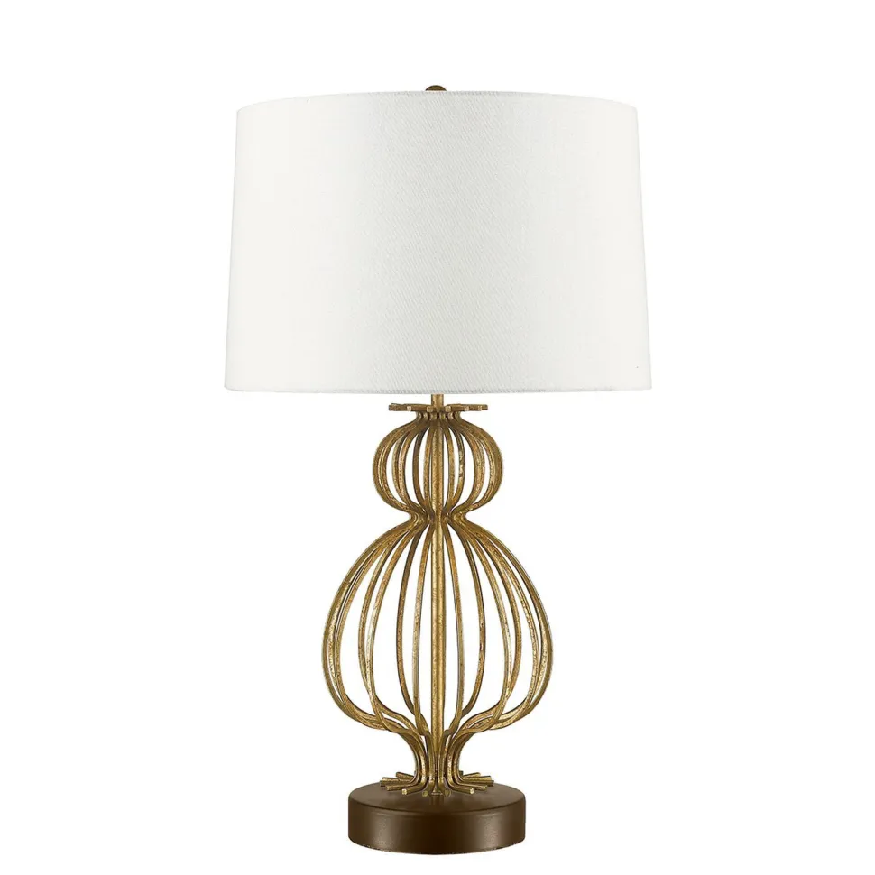 Geschwungene Stäbe bilden das bauchige Gestell und setzen dank ihrer Veredelung mit Blattgold überall elegante Akzente