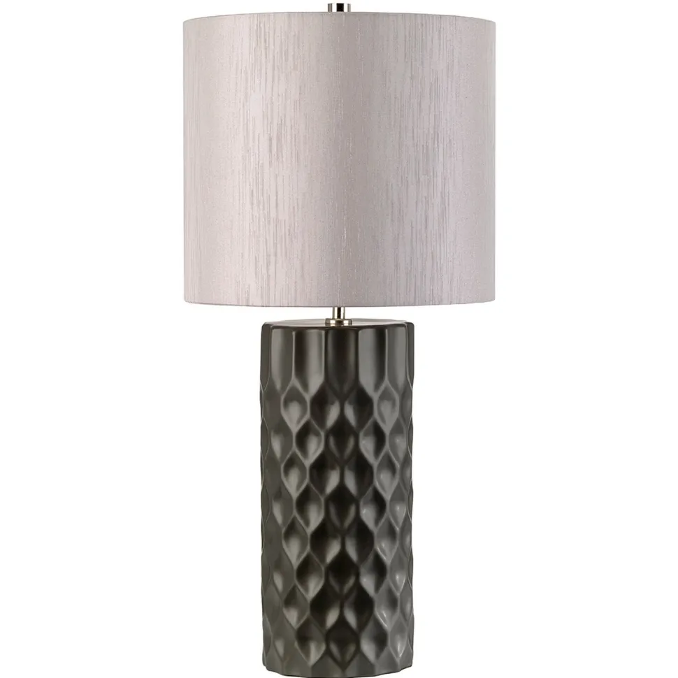 Elegante Tischleuchte mit Keramik Fuß in Graphit und Silber