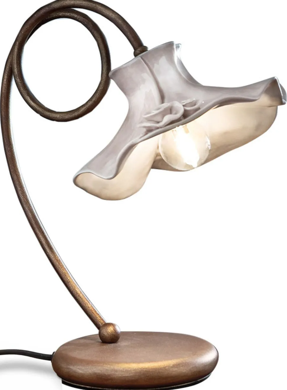 Verspielte Tischlampe aus Metall mit kunstvollem Keramik Lampenschirm