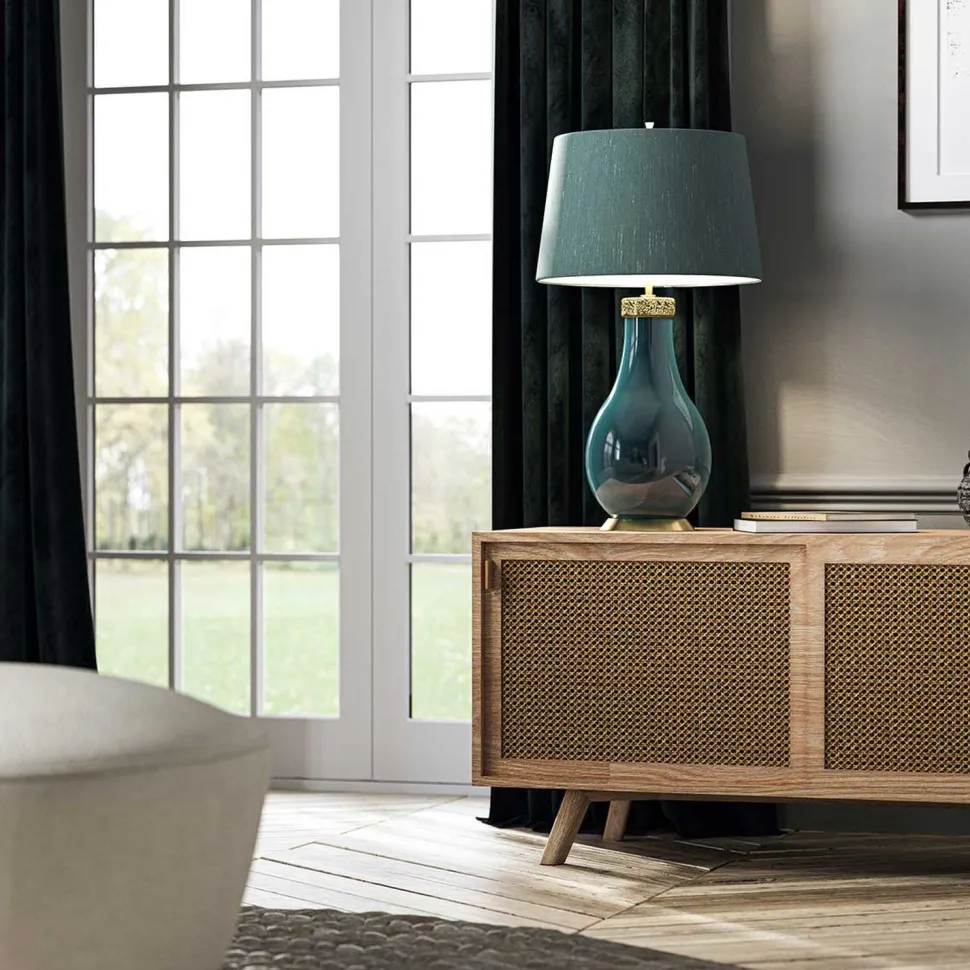 Der Stoff Lampenschirm sorgt für ein blendarmes und angenehmes Licht, was aus der Tischleuchte eine ideale Nachttischlampe und Ambientebeleuchtung macht