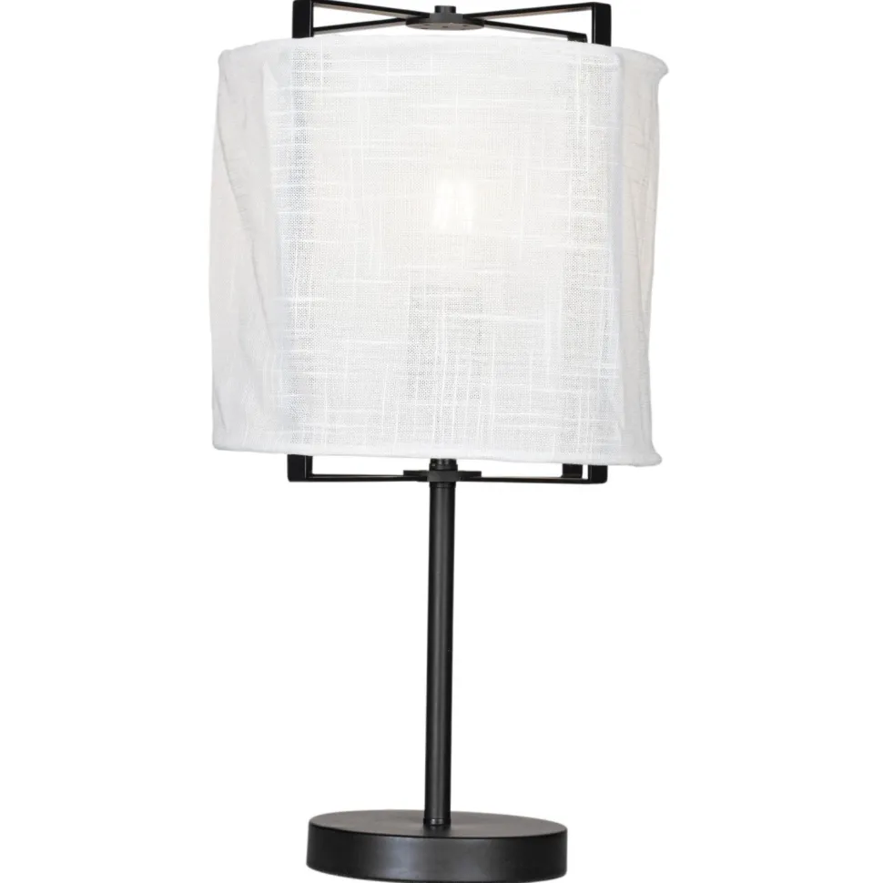 Moderne Tischlampe mit effektvollen Lampenschirm aus Leinen