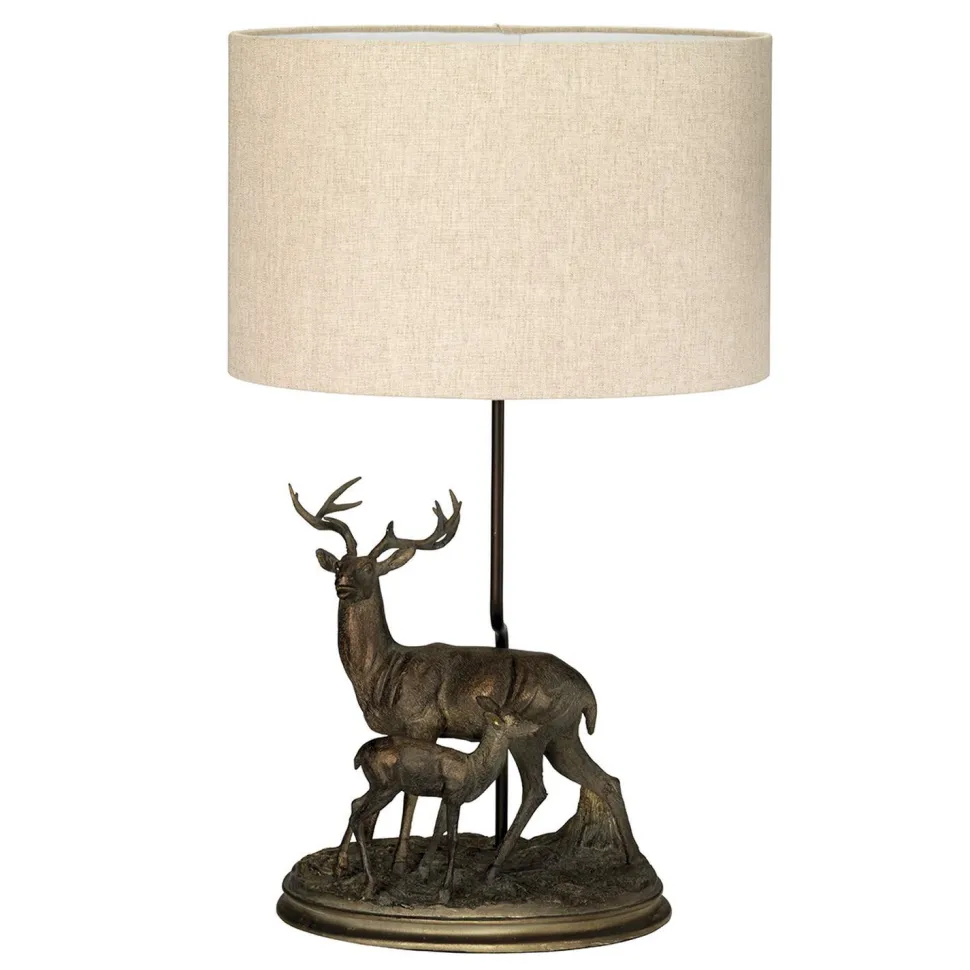 Majestätisch präsentieren sich Hirsch und Rehkitz in dieser angedeuteten Waldlandschaft – ein absoluter Blickfang auf Nachttisch, Beistelltisch und Konsole