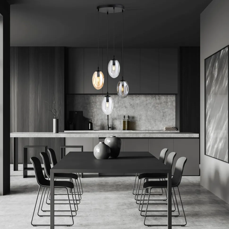 Dekorative Pendelleuchte mit extravagantem Rauchglas Lampenschirm
