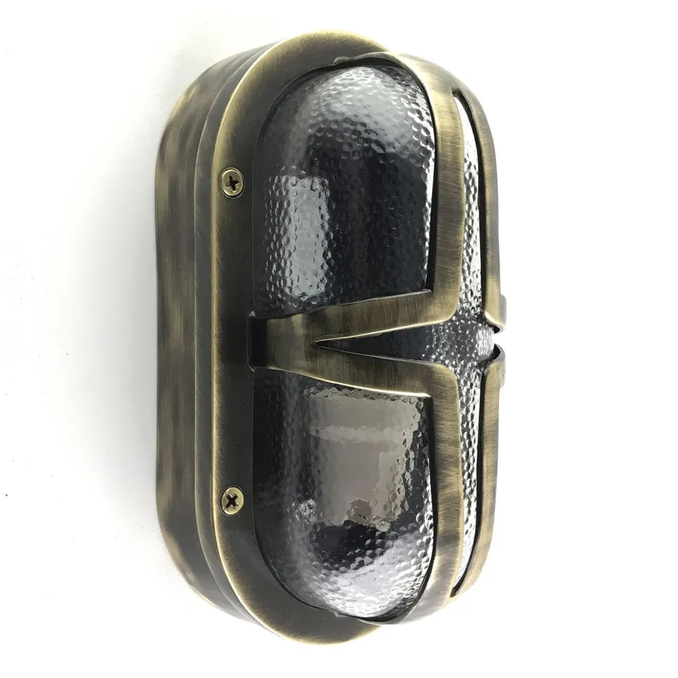 Maritime außen Wandlampe aus massivem Messing und kunstvollem Glas in Antik: ideal als Haustür Lampe, Terrassenbeleuchtung, Balkon Lampe, Carport Beleuchtung und Garagenlampe
