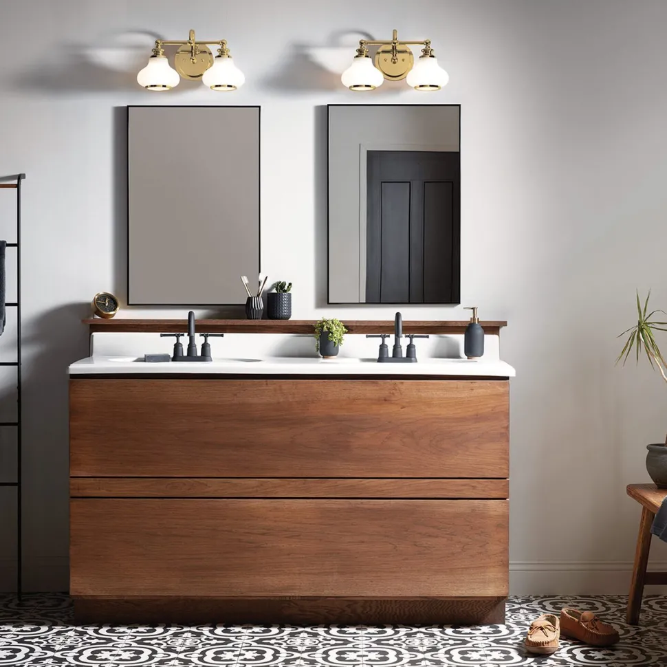 Der warme Messing Farbton unterstreicht das stilvolle Design und jetzt einen dekorativen Akzent in jedem Bad