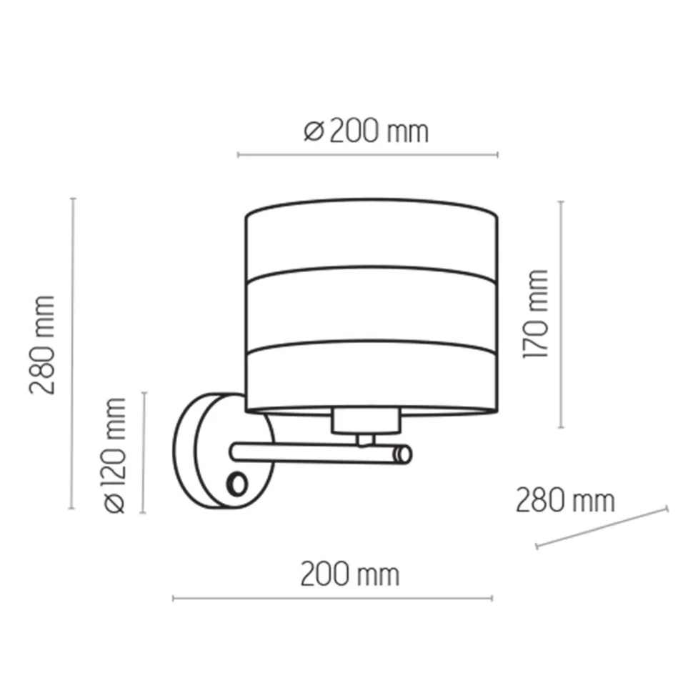 | Maße: | Breite: 200 mm | Höhe: 280 mm | Tiefe: 280 mm | Durchmesser Schirm: 200 mm | Höhe Schirm: 170 mm | Durchmesser Sockel/Wandhalterung: 120 mm |