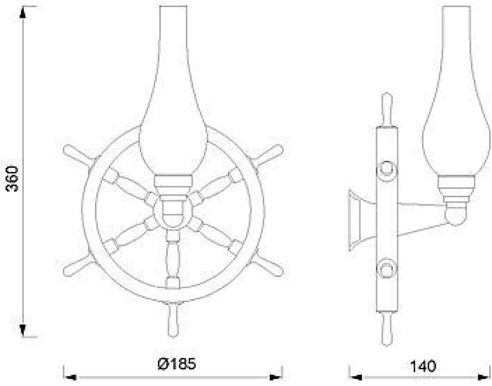 Das glänzende Gestell ist einem Steuerrad nachempfunden und macht aus der Wandlampe ein absolutes Deko-Highlight.