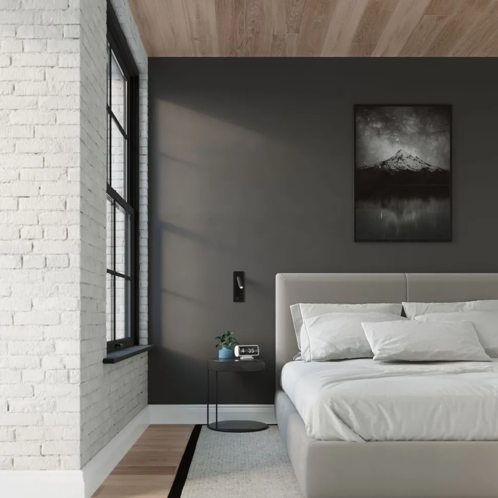 Dank des schmalen Designs ist die Leseleuchte auch für kleine Räume geeignet